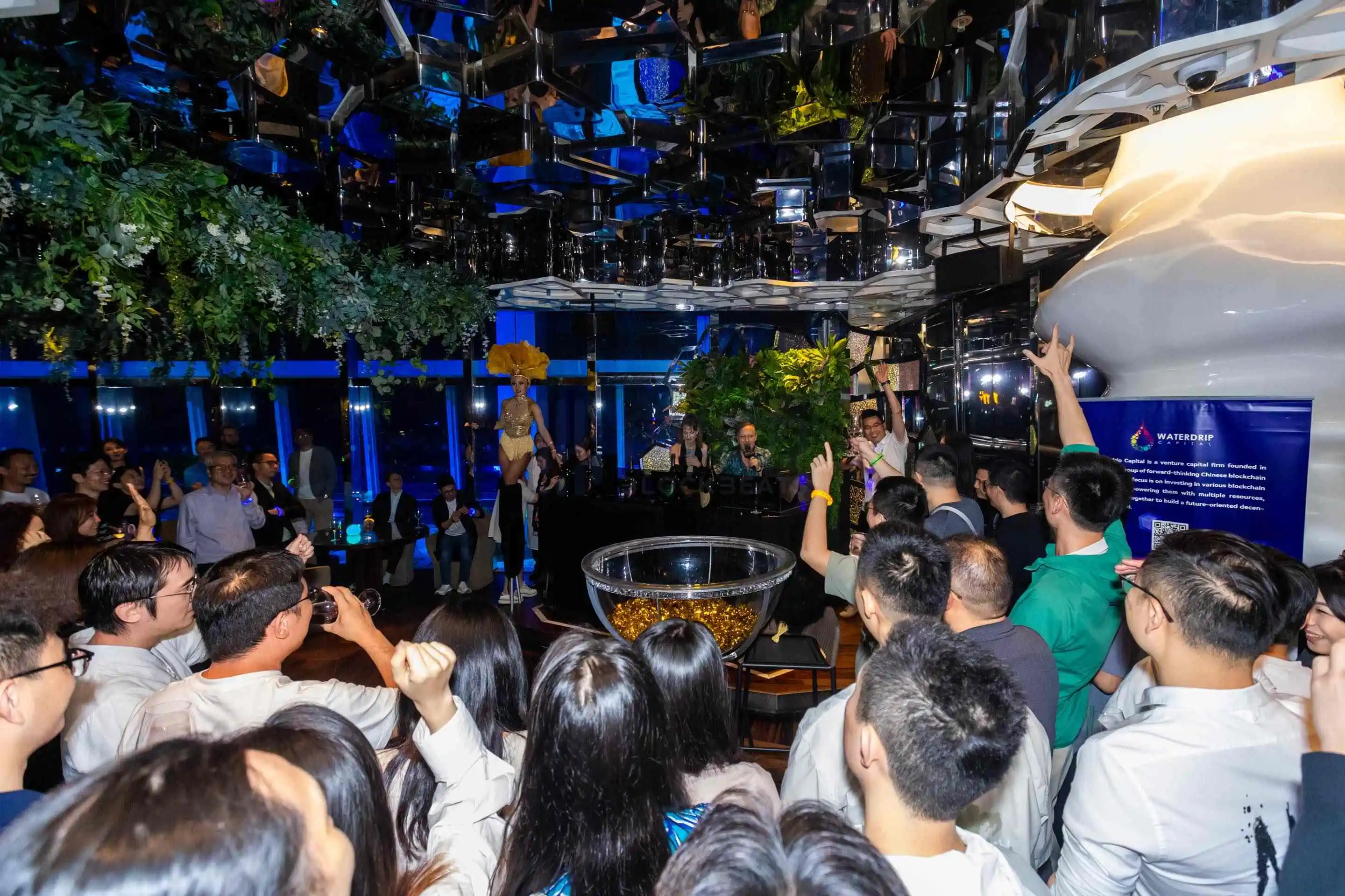 大巫师 Taproot Wizards 主办的活动 party 是在最后一天的 Ordinals Asia 晚上,穿着巫师服装的人挤满了现场,还有泳池给大家洗澡。