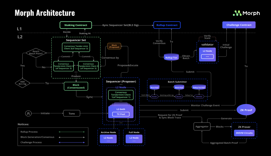 Morph 是一个致力于将区块链技术应用于日常生活的创新项目。其使命是使区块链技术去中心化、公平并且对所有人可访问。Morph 的架构融合了 Optimistic Rollup 和 zkRollup 的优势,并利用去中心化排序器和模块化设计,降低了开发和运营成本,增强了市场竞争力。