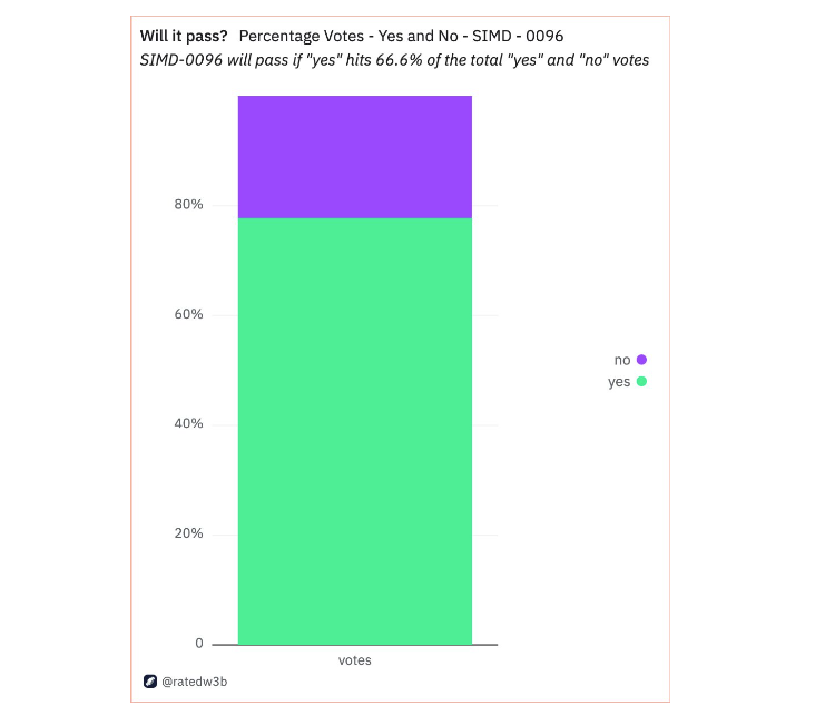 5 月 27 日,Solana 社区投票赞成将网络用户产生的优先权费用 100%分给网络验证者;投票以 77% 的优势获得通过。