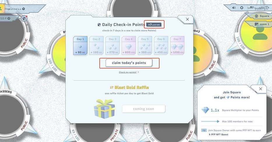 它通过签到拿积分「之前还搞过 3X 积分活动」吸引你每天来进入游戏,然后通过与 Blast 生态合作吸引你去 Stake 质押 ETH 给他提供 TVL,顺便再拿 Blast 的 2X 积分,后又利用“游戏化”的动作,让你去了解其他生态项目。