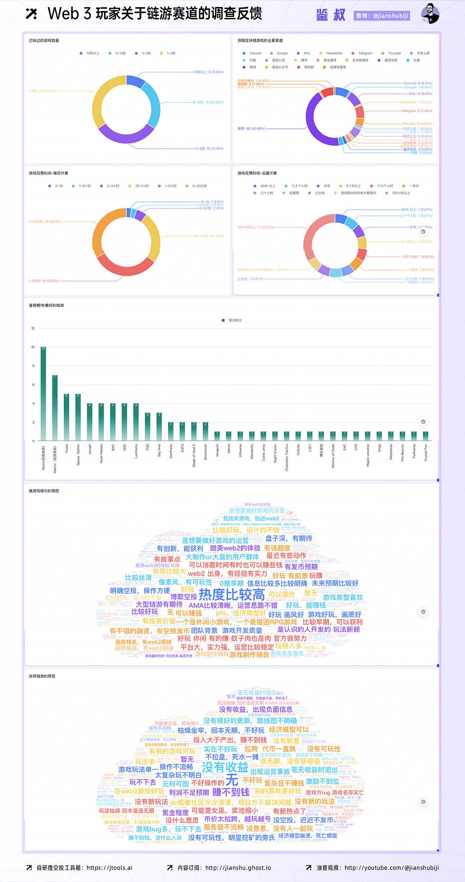 也就是真实的 Web3 玩家们,他们更看重什么?为什么要去玩这款游戏?玩了多久?最吸引他们的点是什么?又因为什么原因退出了游戏?