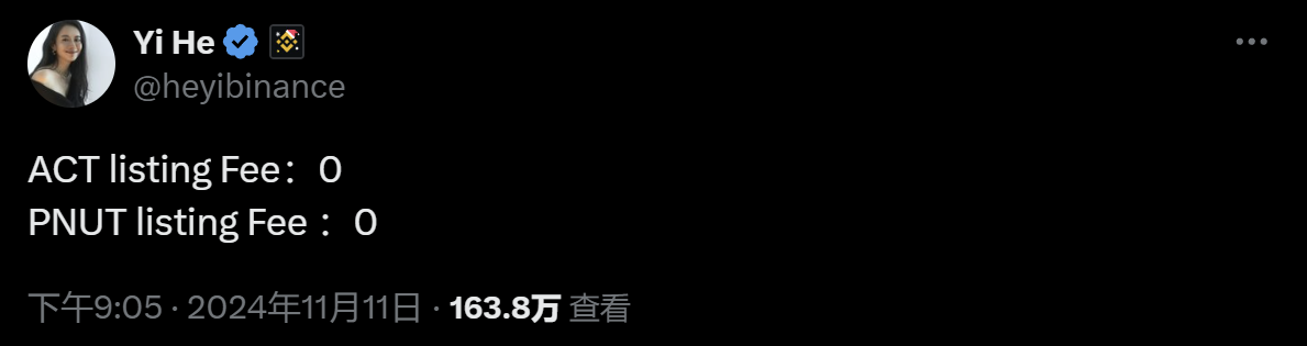 在本着去中心化精神为主的 Crypto 世界里,中心化的 CEX 成为了主要的参与主体。然而 CEX 上币的黑箱操作却很难让市场买单,每隔一段时间都有关于 CEX 上币的「谣言」流传。Binance 的创始人何一曾在上币 PNUT 和 ACT 之后表示「未收取任何的上币费」,强如 Binance 也需要通过上币这件事本身来脱离「上币费」的舆论漩涡。