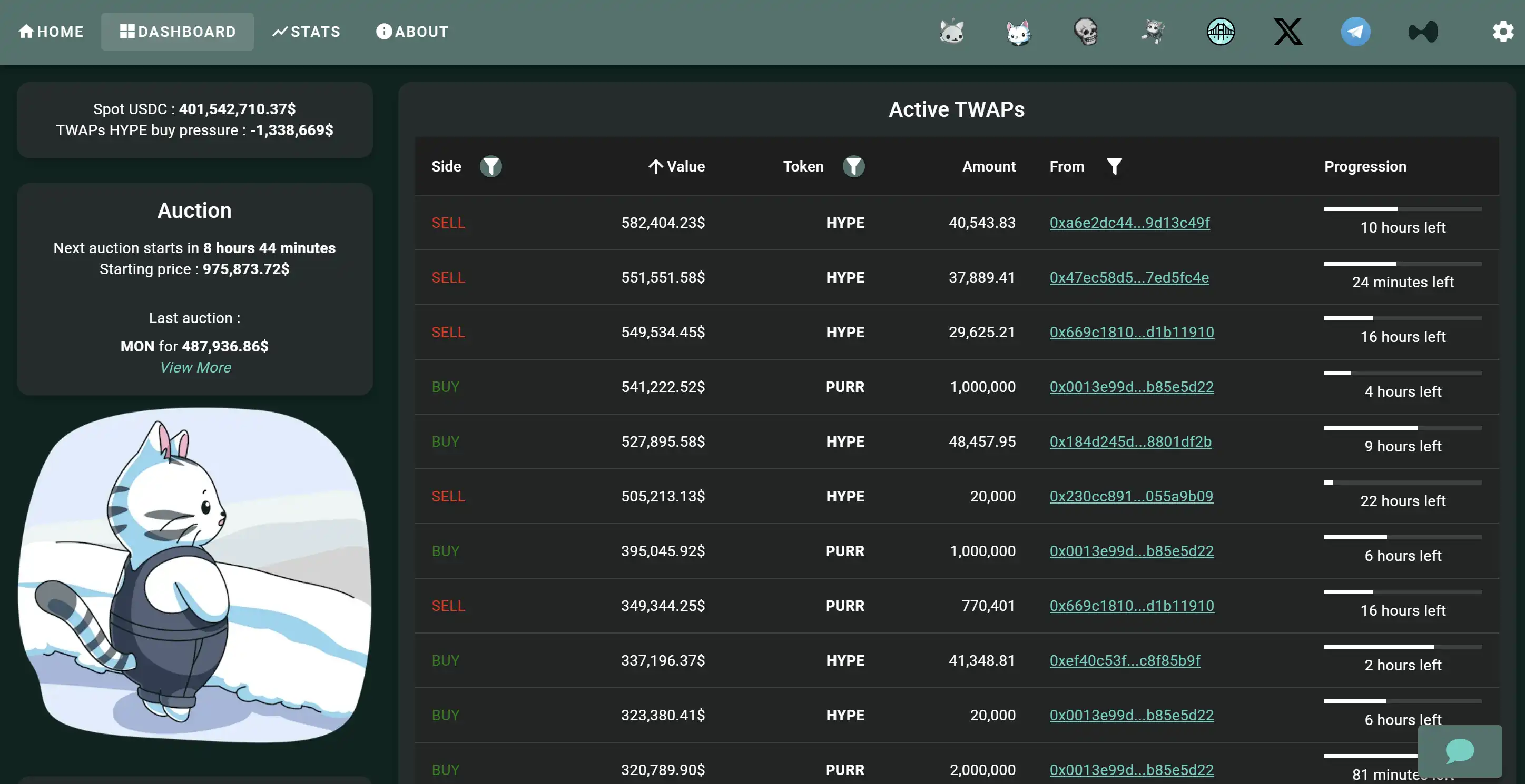 Hyperliquid News:如果想要跟进最新的 Hyperliquid 信息,比如想知道最新的拍卖价格、及时的了解上币信息、迅速的追踪生态动向,关注@HyperliquidNews是你的不二之选。这个推特频道会及时推送有关 Hyperliquid 生态的任何信息,可以理解为 Hyper 的 Blockbeats!