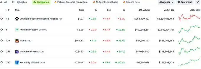 本周大盘处于下跌趋势,各个赛道均处于下跌状态,虽然 AI Agent 赛道的大部分代币价格在本周也处于下跌态势,但是在市场中的讨论度是最高的。本周市场讨论较多的是 aipool 这种 AI Agent+TEE 的模式在未来 Crypto 中的发展和对 Defi 的影响。