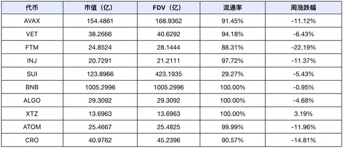 出现次数最多的题材是 L1s,上榜代币情况如下(未计入交易量过小的代币和 meme 币):
