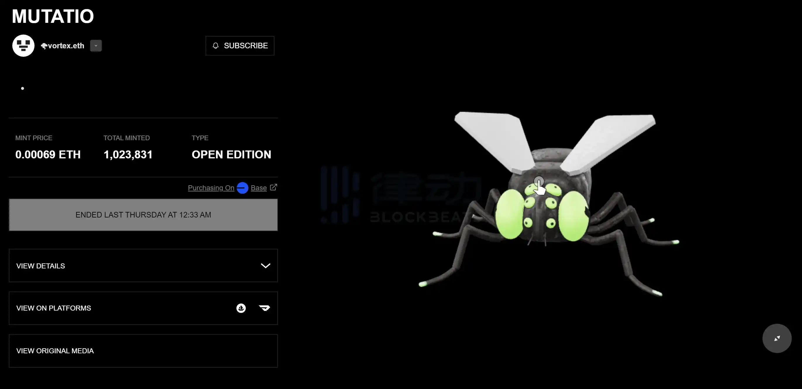 3 月的明星新项目里,其实还应该包含 XCOPY 在 Base 上发行的 Open Edition 系列「MUTATIO」,在为期 2 天的铸造期内售出了 102 万 3831 份,总销售额超过 700 ETH。