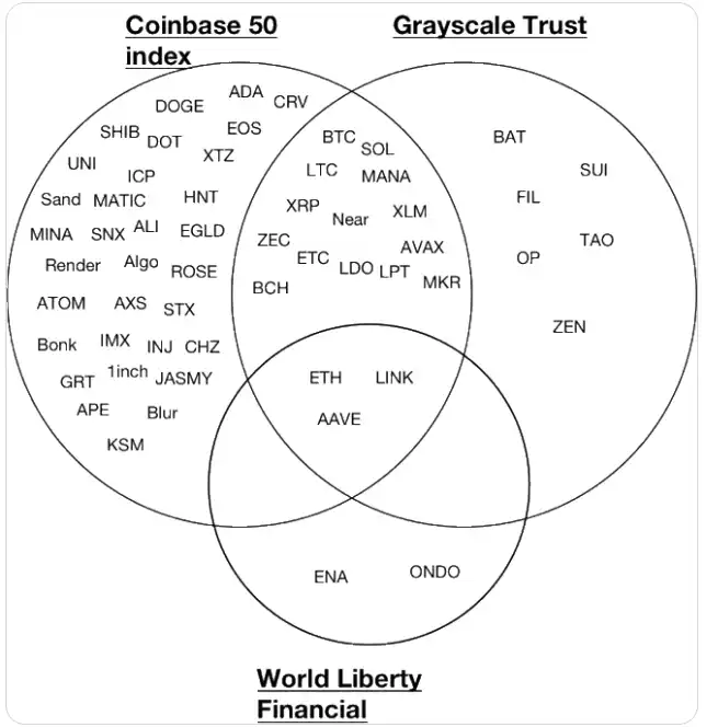 Coin50 指数、灰度信托基金以及 WLFI 加密资产合集,图片来自于网络