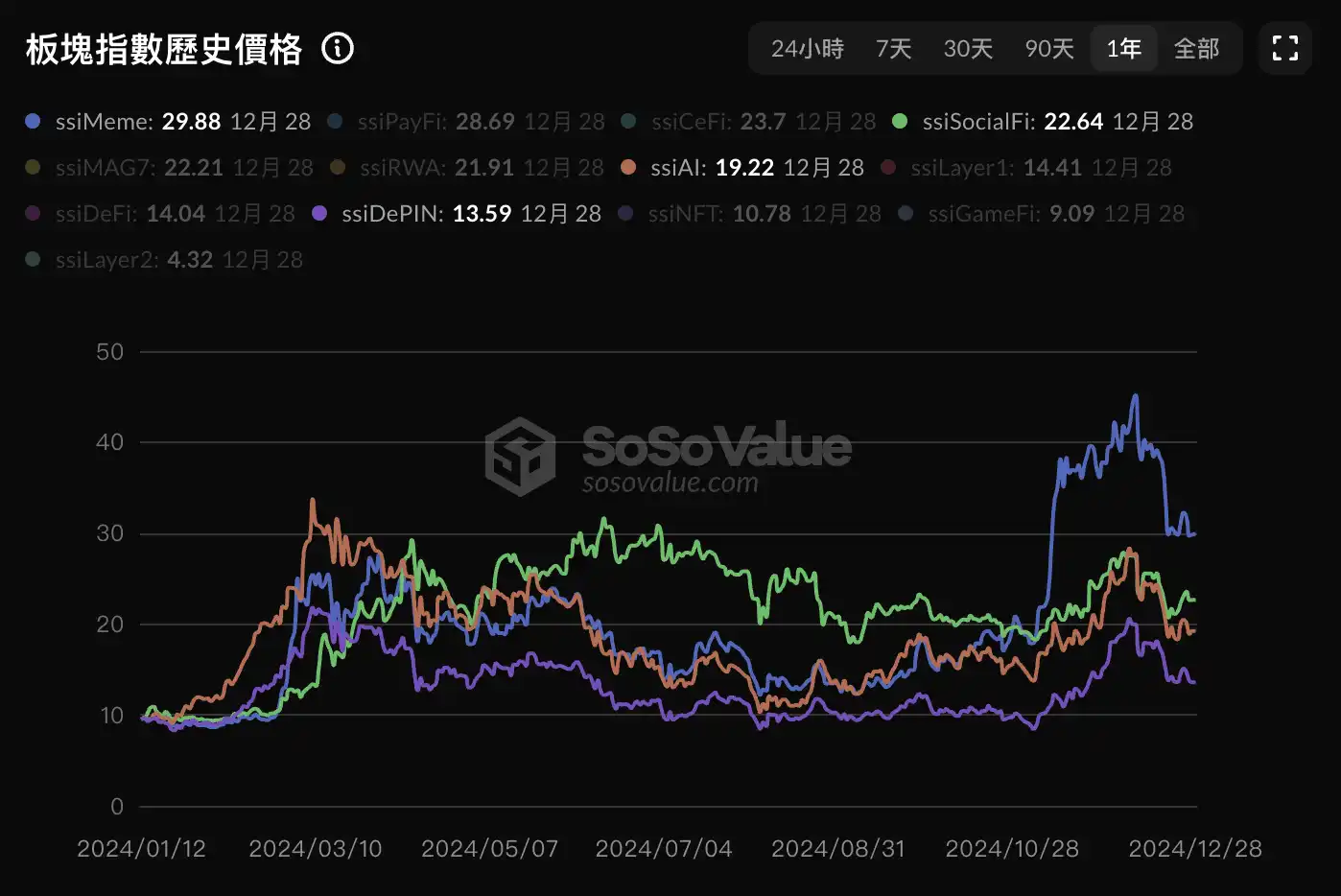DePin 板块 2024 年指数变化;图源:SoSoValue