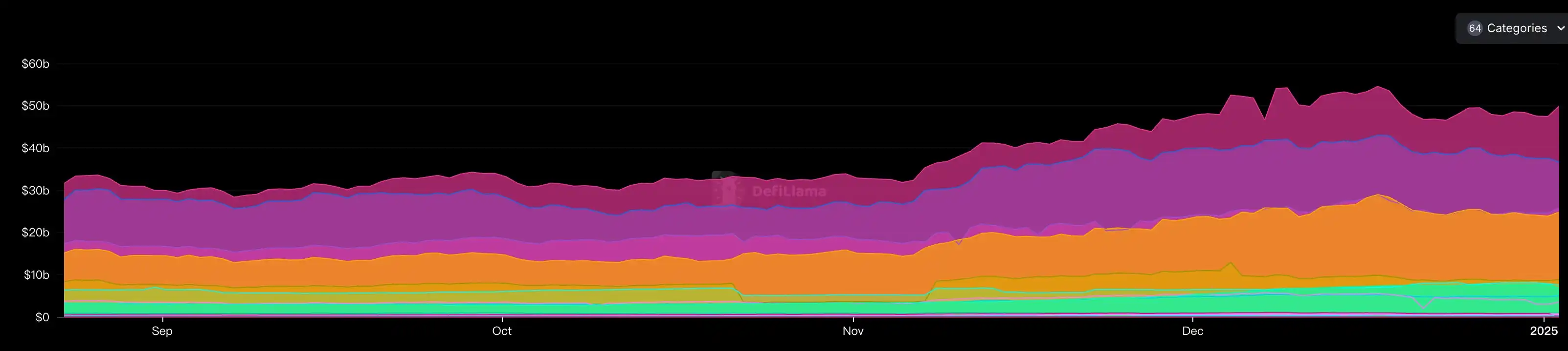 Defi 各个赛道 TVL(数据来源:https://defillama.com/categories)