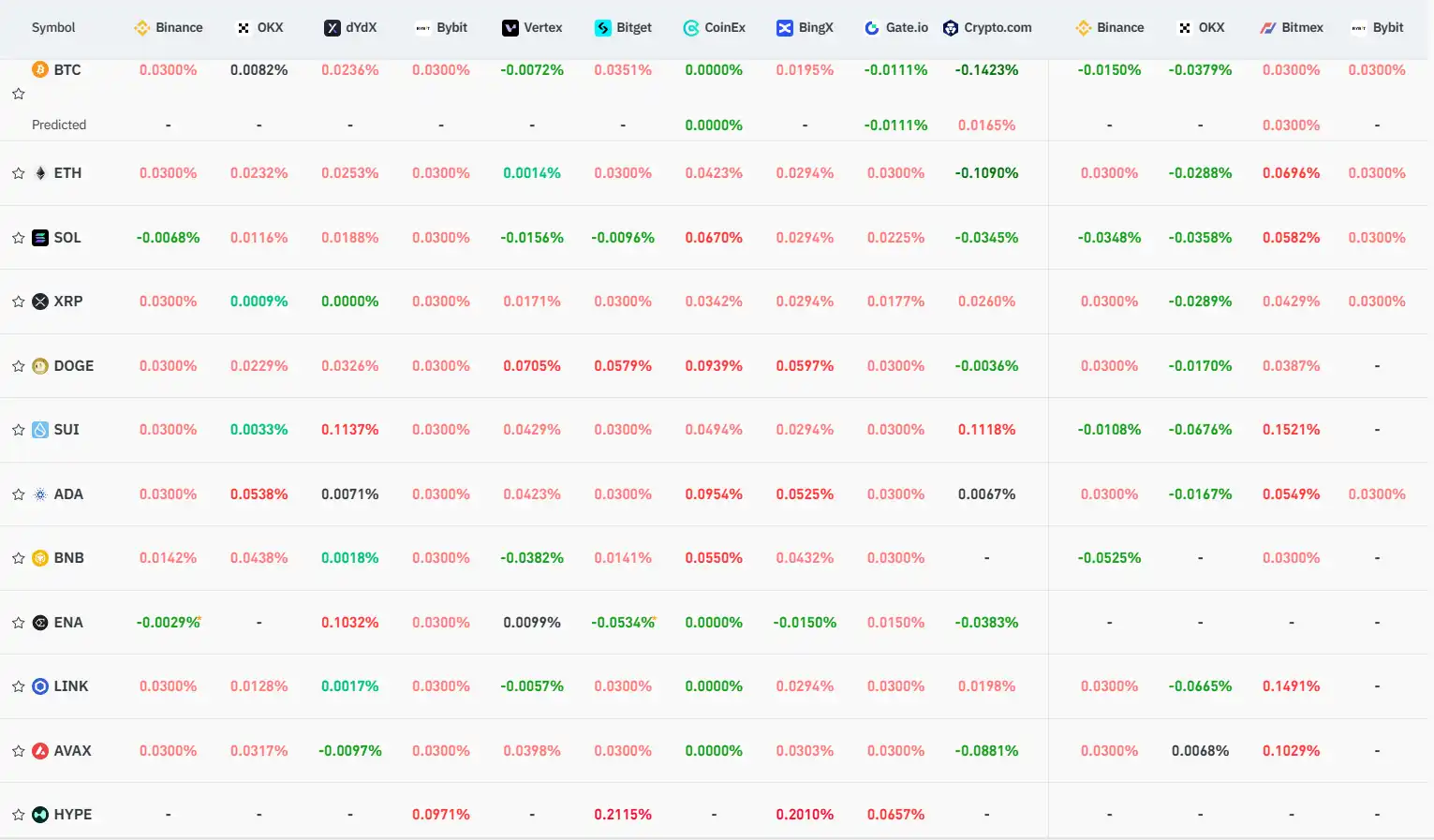 每日市场整体资金热度(根据资金费率反映)与代币解锁