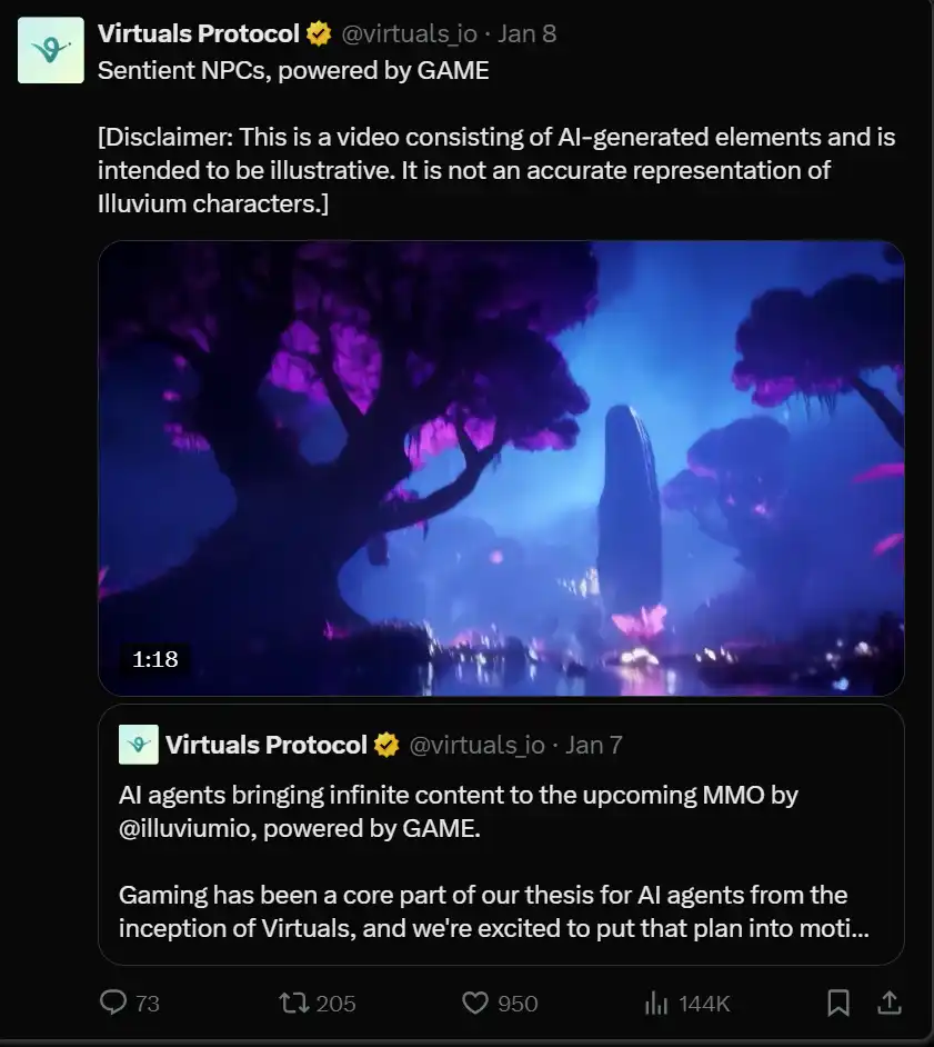 此前,他们还与 illuviumio 合作,将具备感知能力的 NPC/AI-NPC 引入了 Illuvium 游戏中。