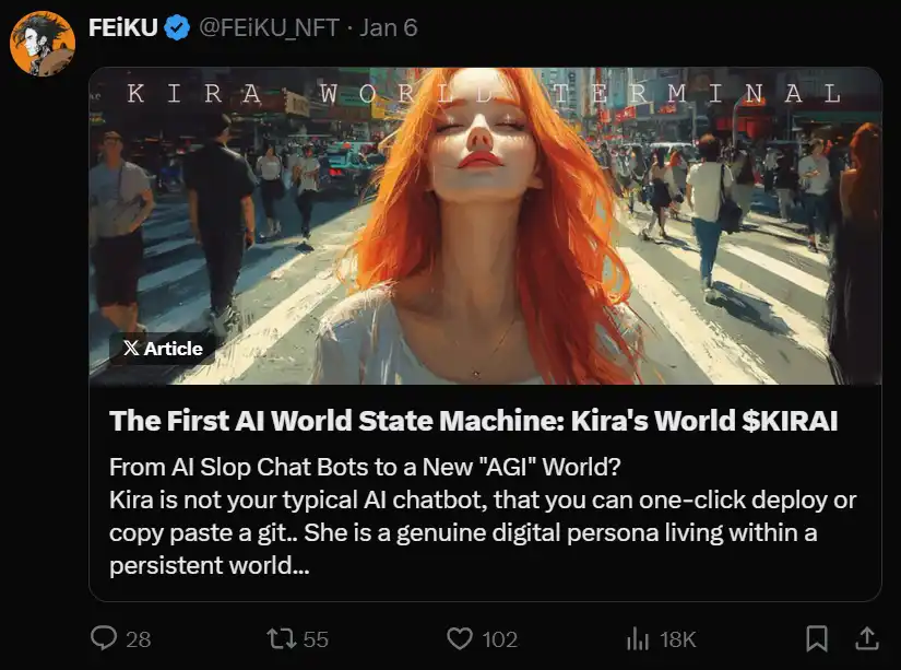 除了 Virtuals 生态系统,我们还见证了 World State Machine 的崛起,它超越了传统的对话型 agent,通过创建一个持续运行的 24/7 模拟环境,使 Kira 作为一个具有类人行为的数字人物存在。