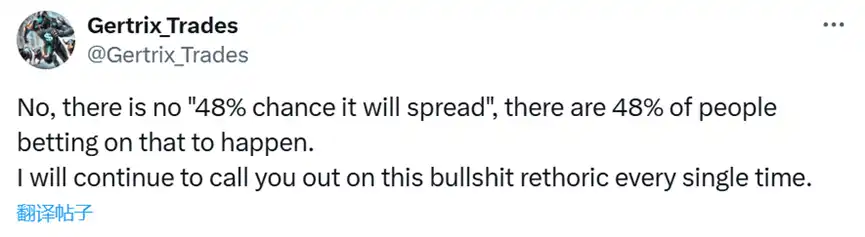 一些用户更担心,野火预测市场可能会鼓励赌徒纵火以提高其投注的成功率。一位用户指出,这些市场的赔率完全基于赌徒的情绪,并在回应 Polymarket 的帖子时表示:「不,没有所谓『48% 的可能性会蔓延』,只是有 48% 的人在赌它会发生。」
