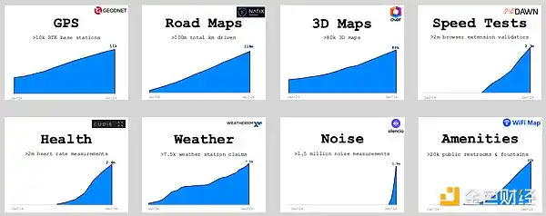 · DePIN 正处于其早期发展阶段,在 1 + 万亿美元规模的终端市场中的份额不到 0.1%。