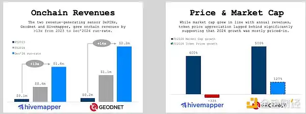 DePIN 总营收在 2024 年增长了 33 倍(仅包括链上净收入增长了 3.3 倍)。