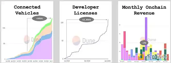 2024 年,Dimo 的生态系统在供应侧规模和开发者活动方面实现了有意义的增长,而其链上收入在年底大致持平,约为 1 万美元的年化收入(ARR)。