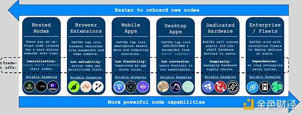 大多数 DePIN 项目结合了轻节点(用于降低新用户加入的摩擦和获取新用户)和重节点(用于实现更强、更可靠的网络性能)。