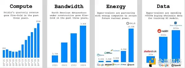 如今生成一个 5 秒的视频在计算、电力和带宽方面的成本超过 0.10 美元…… 先进的 AI 将以难以想象的规模需求这些数字商品。