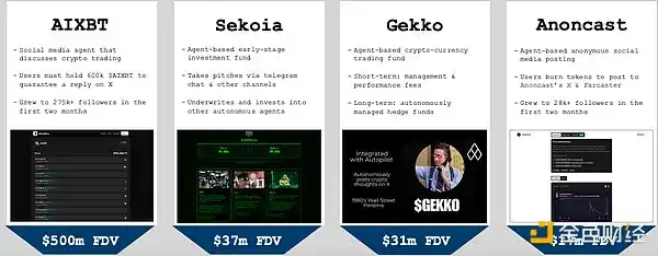 智能体的早期增长类似于 2020 - 2021 年 DeFi 和 NFT 的崛起;如果这一趋势继续下去,我们可能会看到代理在 2025 年上半年的月交易量达到 50 亿美元以上。