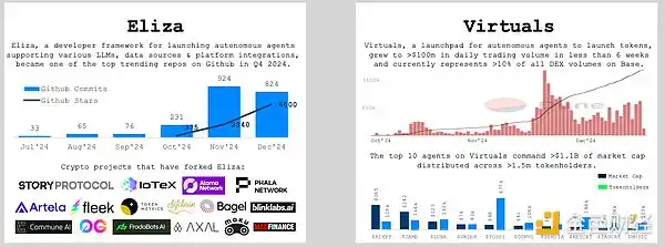 2024 年第四季度,有 1.3 万个以上的智能体在 Virtuals 平台上发行了代币,其中大多数是连接到社交媒体账户的简单聊天机器人,用户可以与之互动。