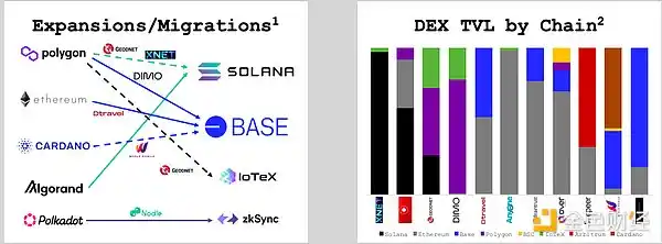DePIN 的「公链战争」加速,Solana 和 Base 从其他 Layer 1 区块链中夺取了市场份额。