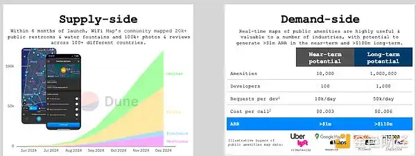 收入:2022 年至 2024 年,DePIN 收入从 1 亿美元增长到 50 亿美元,增长了 100 倍(包括链上净收入在内增长了 3.3 倍),这推翻了熊市批评者声称的「DePIN 没有需求侧」的观点。