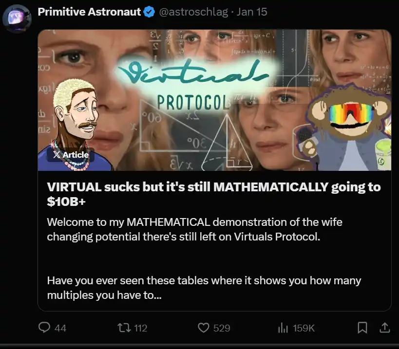 我对 Virtuals 的观点有些偏见(完全公开,我持有大量 VIRTUAL),在做出任何决策之前,请务必进行自己的研究。