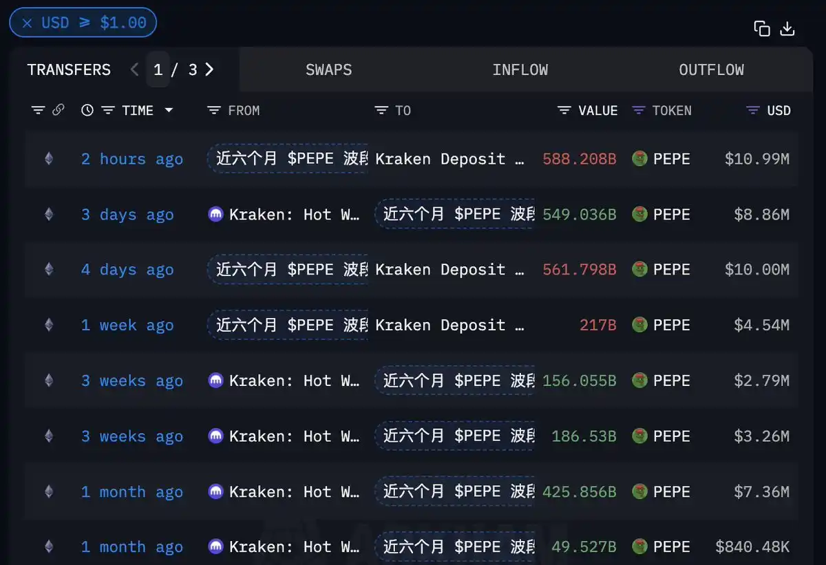 过去六个月通过 $PEPE 波段获利 492 万美金的聪明钱,清仓 5882 亿枚 PEPE(1099 万美金),获利 105.3 万美金。