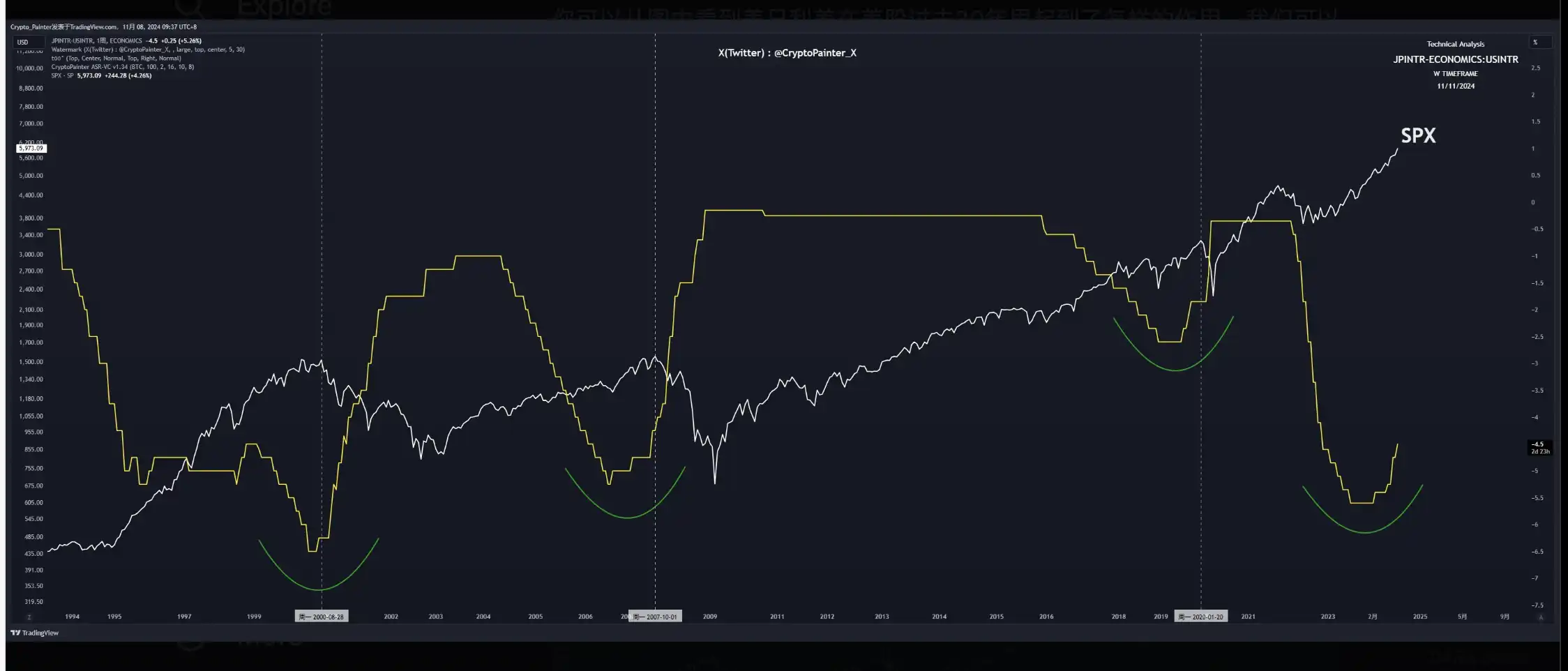 日经指数对于加密货币市场也有着非常深刻的影响,原因是日元的 Carry Trade(套息交易)是一种外汇交易策略。由于日本长期实行低利率政策,投资者可以借入日元,然后将借入的日元兑换成其他高收益货币(如澳元、新西兰元等),再用这些高收益货币进行投资,如购买高收益货币国家的债券或者投资当地的股票市场等,从而赚取利差,而日元加息会对 Carry Trade 造成巨大的影响,降低全球金融市场的流动性,BTC 在 2024 年中的闪崩,自 7 万美元附近下跌至 49000 美元附近正是在日元加息的影响下产生的。