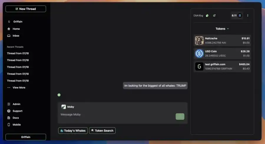根据文档,Griffain 上的大多数交易是用 SOL 支付的。