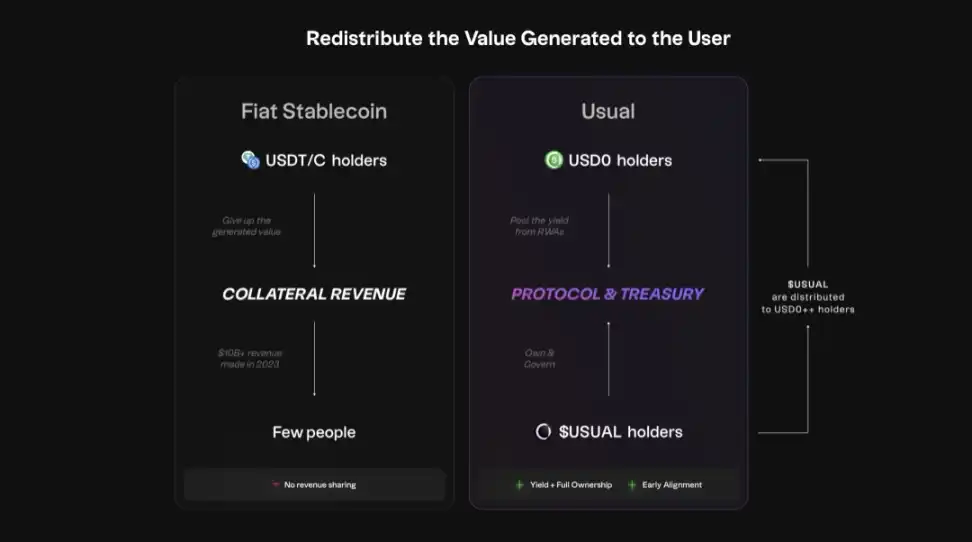 本轮周期有可能出现类似于 USDT/USDC 那样安全、且能够提供至少 5% 可持续收益的稳定币。这个市场无疑蕴含着巨大的潜力。目前,USDT 发行商 Tether 的年利润已接近百亿美元,而其团队仅有约 100 人。如果能够将这部分利润回馈给用户,是否能实现收益型稳定币的愿景呢?