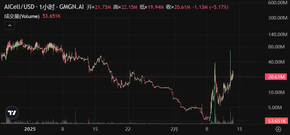 AICELL 是 BNB Chain 上第一个 AI Agent 代币和 AI Meme,从低点到现在有将近 10 倍的反弹。目前市值为 2000w 美金,可以等待合适的时机入场。随着 BNB Chain 将 AI 和 Meme 同时作为未来方向,AICell 将是一个值得关注的标的。