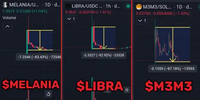 在 $LIBRA、$MELANIA 及其他 memecoin 项目中,Meteora 提供了关键的流动性管理、技术支持,并帮助 Kelsier 进行市场操纵。例如,在 M3M3 Launchpad 的多个 memecoin 发行过程中,Meteora 负责确保大部分代币流入内幕交易者手中,而散户则成为收割的对象。