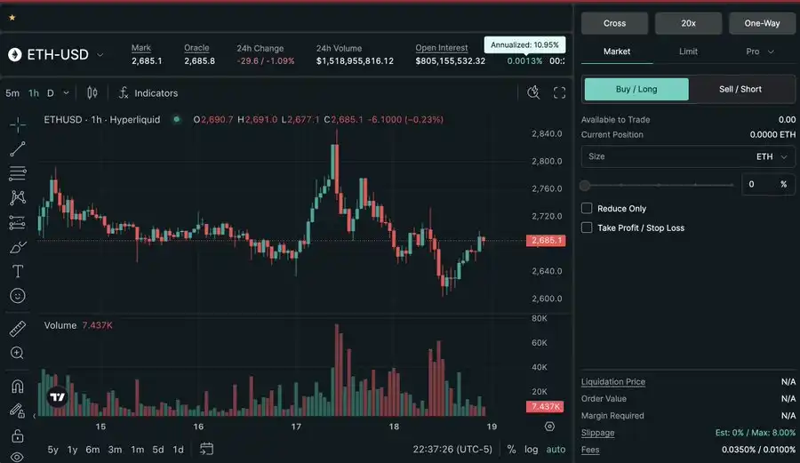 HyperEVM 是一条通用的 EVM 兼容链,支持以太坊的常用工具。EVM 是无许可的,任何人都可以部署智能合约,而这些智能合约还可以直接访问 L1 上的链上永续合约和现货流动性。