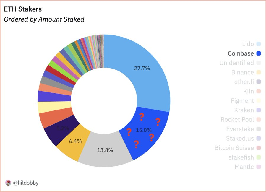 Coinbase 与 ETH 如此紧密地对齐,以至于他们控制了其安全层的 21%,但拒绝披露。