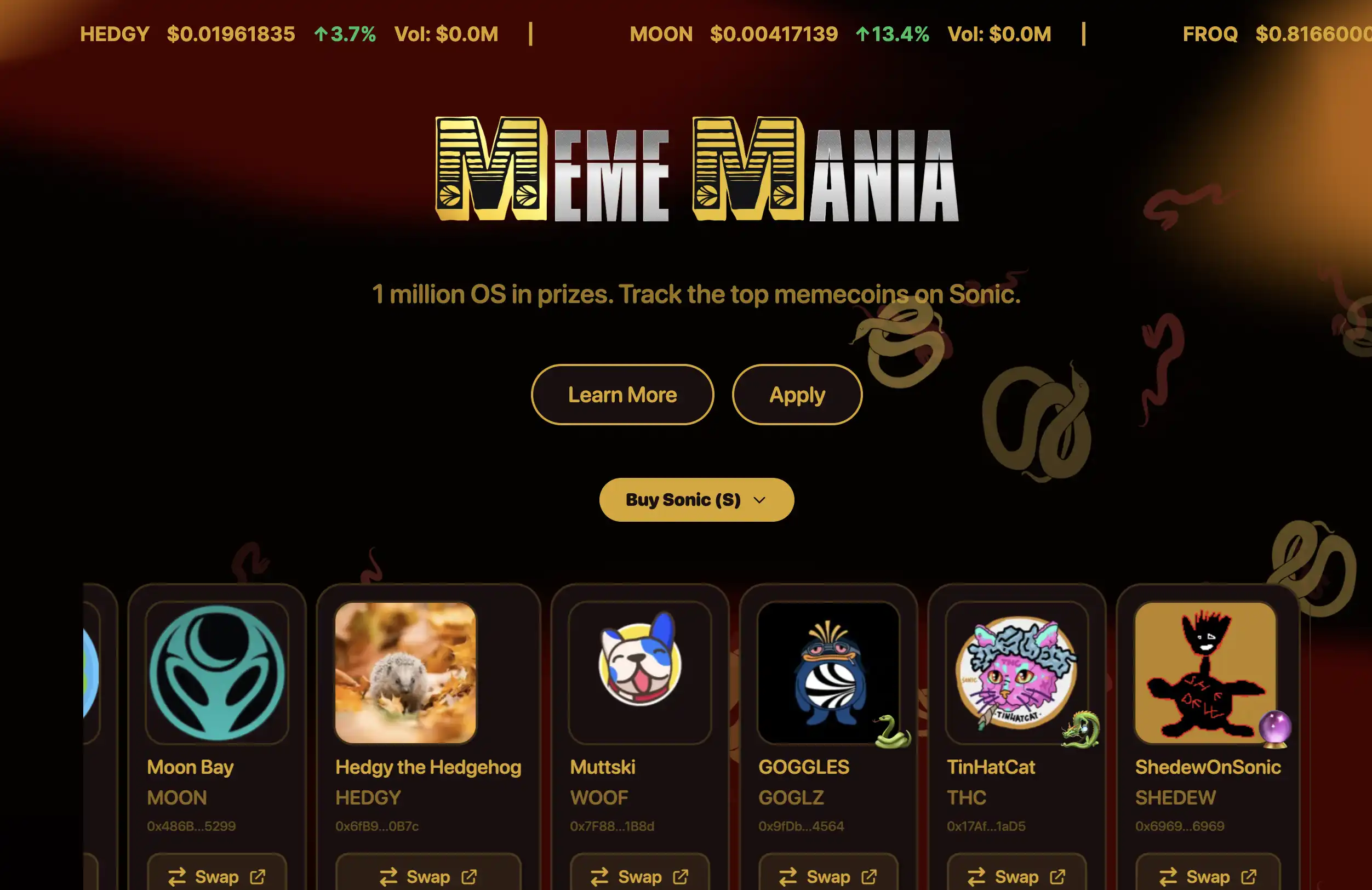 Meme 大赛则共 100 万$OS 作为奖金,目前参赛者中最高市值接近 700 万美元。Sonic 上 Meme coin 的基础设施还相对不完善,不知道作为交易最快的链发展 DeFi 的同时,是否也会延续 Solana 的策略去抢占 Meme 的市场。
