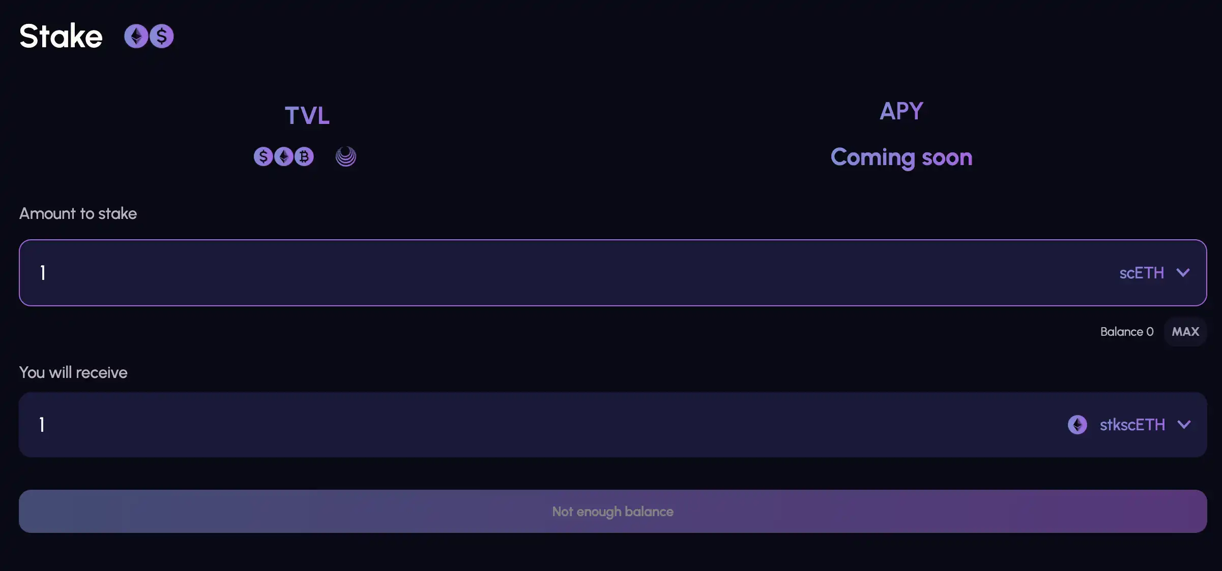 而后中转则是 Ether.fi, Ether.fi 与 Lombard 合作,推出的首个比特币流动重质押代币「eBTC」,eBTC 在后台使用 LBTC 作为抵押品,使 eBTC 持有者有可能获得多层收益,因为他们既受益于 LBTC 的质押奖励「由实际比特币支持」,又受益于 Ether.fi 在以太坊上的重质押策略。eBTC 还可以存入以太坊上的 Rings,以铸造 scBTC。