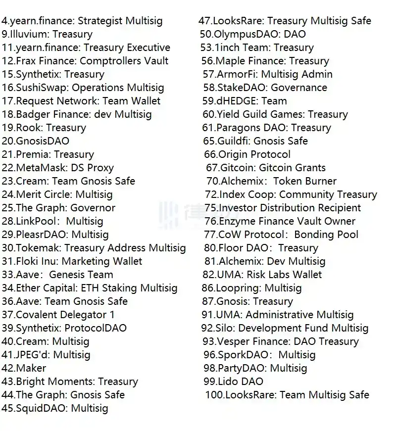 Safe 是以太坊生态中最被重用的多重签名钱包,也是大户专用钱包。今年 Safe 发币时,空投地址前 100 的名单里,几乎清一色都是项目方或是机构。包括 OP、Polymarket、Drukula、Worldcoin、Lido 等等。相关阅读:《Safe 即将交易,代币经济学与生态一览》
