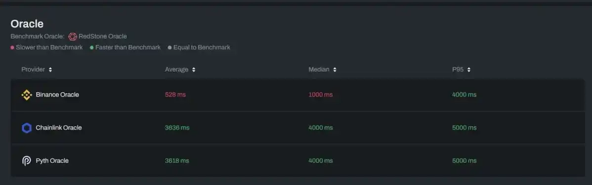 -RedStone 在 2024 年 20 亿美元的大清算和 Renzo(ezETH)脱钩期间相比其他预言机价格更新速度快、低延迟、高稳定性和准确性。