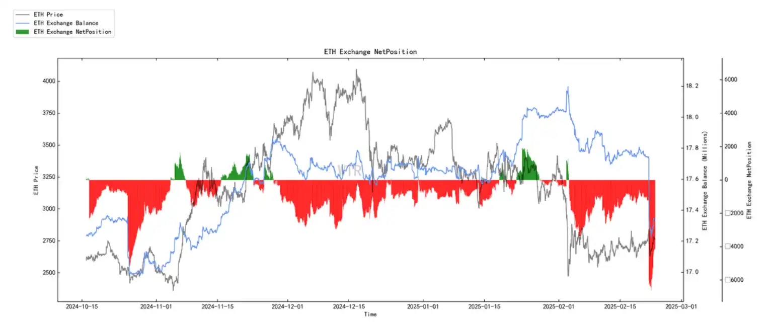 ETH 交易所净头⼨持续性⼤量流出累积。