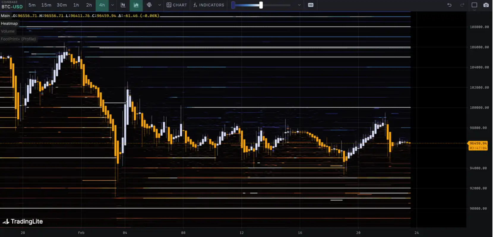 观察筹码分布图,在约 95000 附近有⼤量筹码成交,将有⼀定的⽀撑或压⼒。