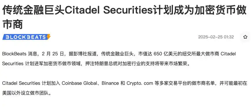 昨天,Citadel Securities 做市商宣布计划进军加密货币做市领域。像是传统金融巨头们的市场接力赛,Jump Crypto 退场,同样来自传统金融背景的 Citadel Securities,选择接过了加密市场的接力棒。