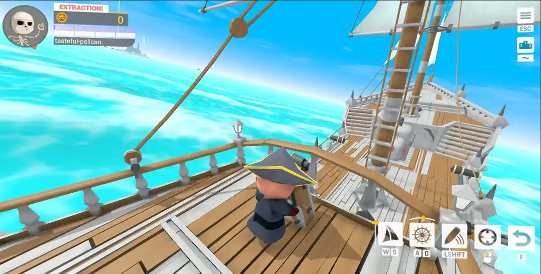 一人开船,剩下的玩家操纵火炮,打海战。在游戏里和电脑控制的敌人或是其他玩家发生战斗,尽可能多的搜集战利品。