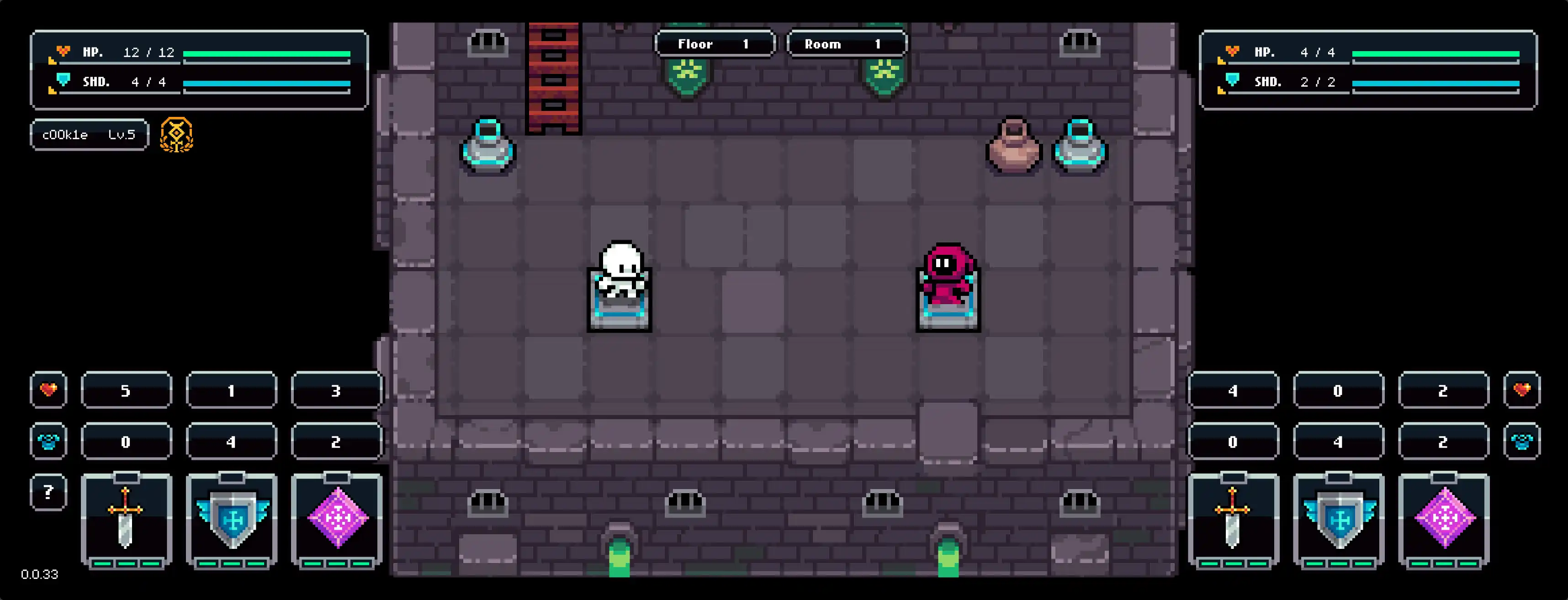 目前已经可供体验的游戏内容其实也很简单,就是和电脑以类似「剪刀石头布」的玩法进行对战,战胜后就可以获得一次能力强化的机会并进入下一层,直到打不过为止。在每一次战胜对手后,都会掉落一些游戏内的道具,可用于永久强化自身的基础属性。