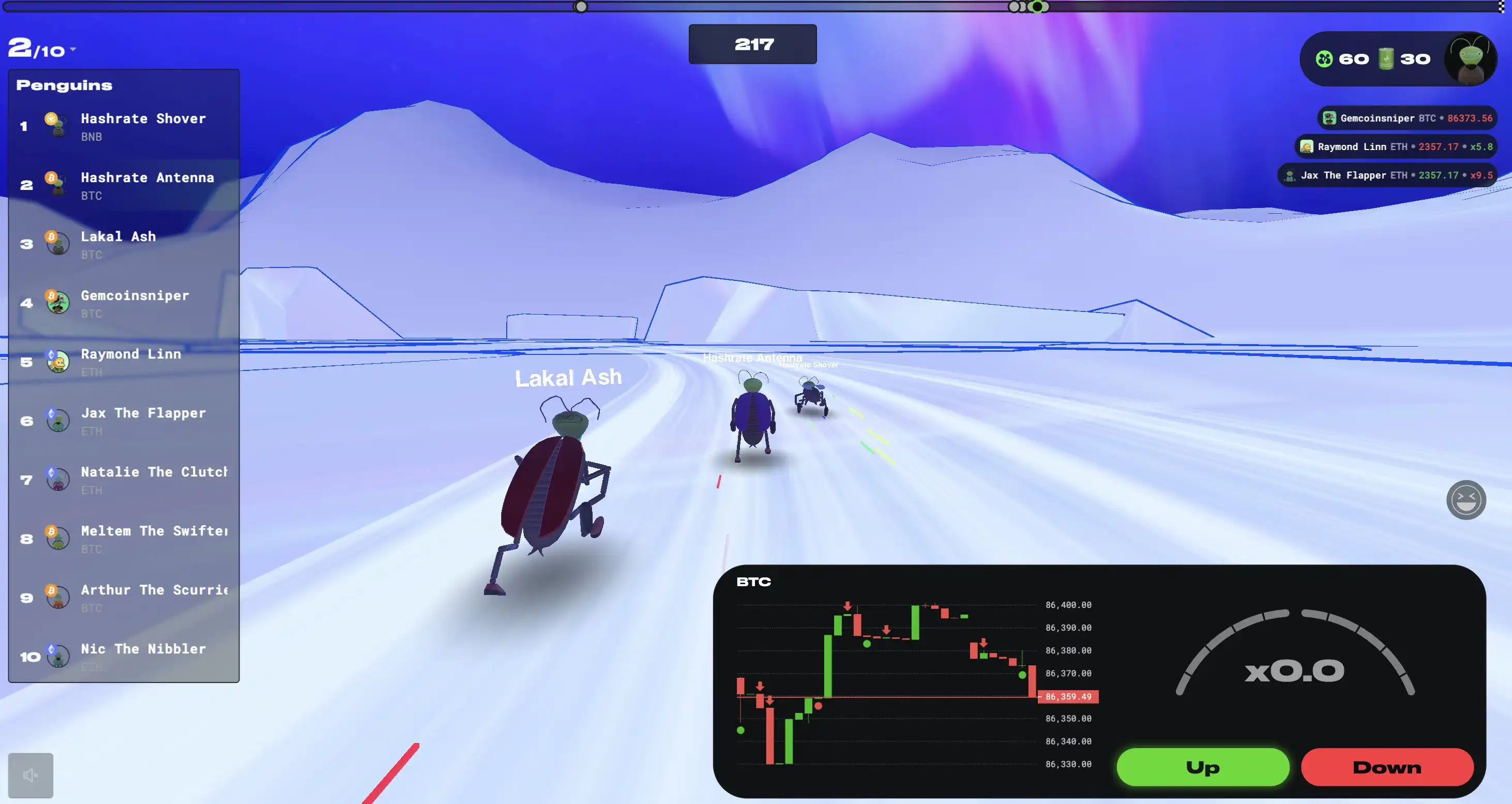 游戏是一堆虫子比赛跑步,如果 10 人满局,那么跑到前 3 名就可以获得 $MTGN 奖励,实际上是一个 Play to Airdrop 的过程。