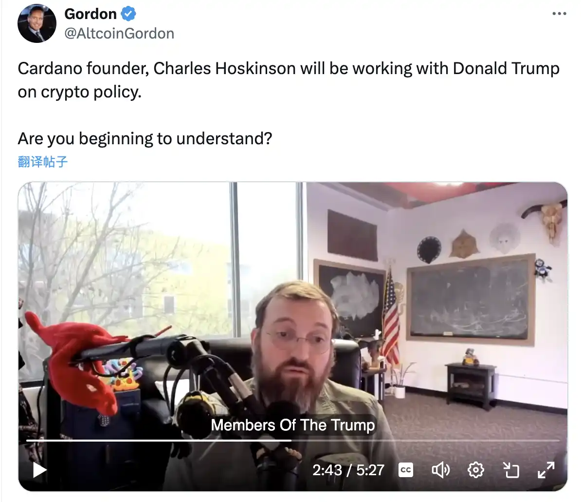而市场对于 Cardano 入选战略资产储备,不少人猜测其靠的不是技术,而是与美国政府建立了紧密联系,特别是创始人 Charles Hoskinson 多次暗示。比如,2024 年 11 月,正值 Charles Hoskinson 被传言特朗普考虑任命其为加密政策顾问之际,他在一次对话中透露自己与特朗普团队中的某位成员关系密切。他表示,将与立法者和政府合作,推动一项两党法案获得通过。Cardano 研发公司 Input Output Global 将在 2025 年初建立加密货币监管政策办公室,并计划与美国政府「某些关键职位的领导人」接触,推动制定与加密货币相关的证券和商品的立法议程。不过,截至目前,这一计划的具体进展尚未公开,并没有证据表明他已正式受雇于美国政府。