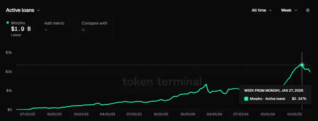 Morpho 的贷款规模,数据来源:Tokenterminal