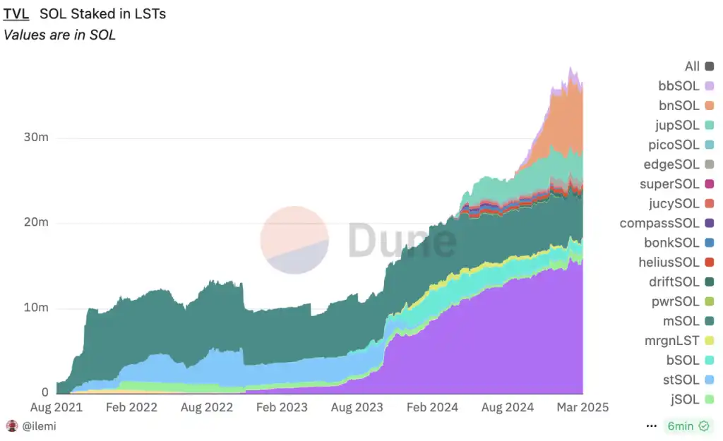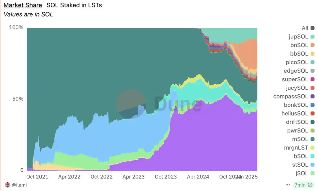 Solana 流动性质押市场份额占比 来源:Dune