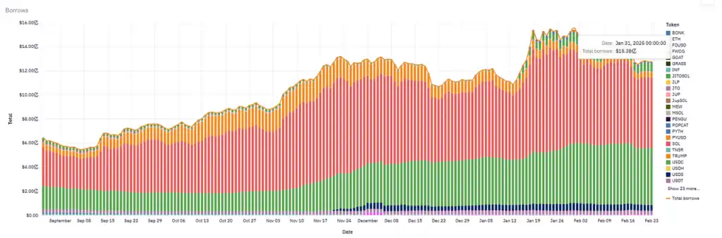 Morphp 的最高贷款总规模与 Aave 类似,出现在 1 月末,达到 23.5 亿美金,目前为 19 亿美金。