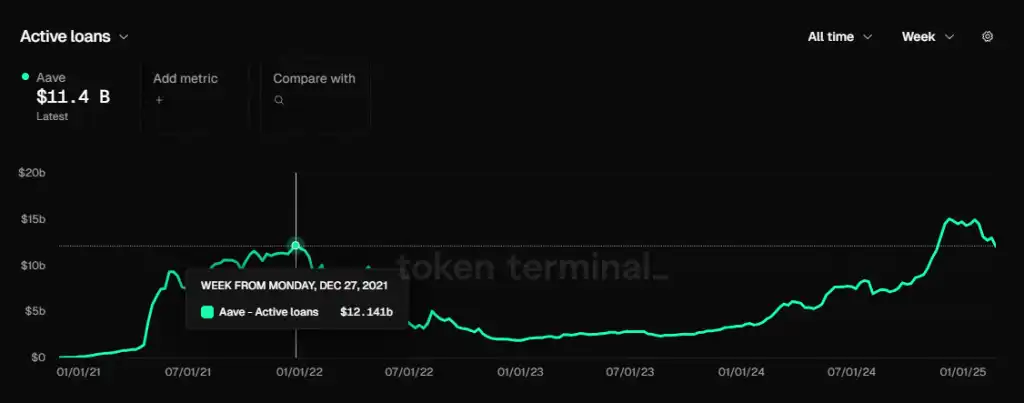 Aave 的贷款规模,数据来源:Tokenterminal